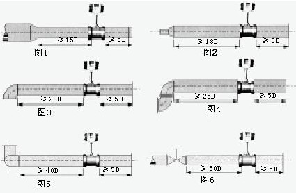 為了確保儀表正常、準確運行,傳感器安裝點的上下游須有一定的直管道,以調整流場,如圖所示。