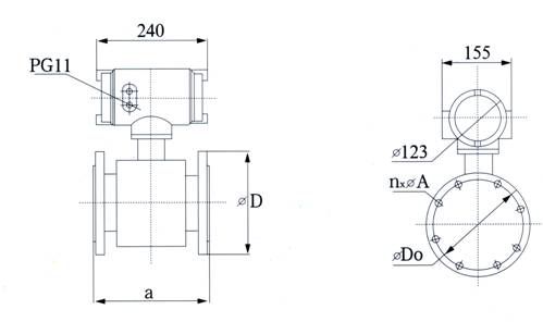 根據(jù)法拉第電磁感應(yīng)原理,在與測(cè)量管軸線和磁力線相垂直的管壁上安裝了一對(duì)檢測(cè)電極,當(dāng)導(dǎo)電液體沿測(cè)量管軸線運(yùn)動(dòng)時(shí),導(dǎo)電液體切割磁力線產(chǎn)生感應(yīng)電勢(shì),此感應(yīng)電勢(shì)由兩個(gè)檢測(cè)電極檢出,數(shù)值大小與流量成正比例,其值為: