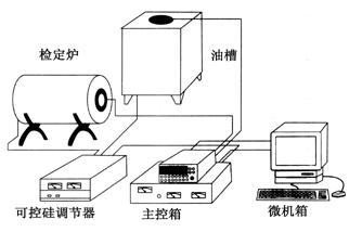 YF100-C熱工自動(dòng)檢定系統(tǒng)由高精度數(shù)字多用表、主控箱、可控硅調(diào)節(jié)器、微機(jī)系統(tǒng)、恒溫裝置(檢定爐和油槽)以及測(cè)量導(dǎo)線和通訊導(dǎo)線組成,如圖所示。
