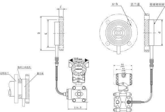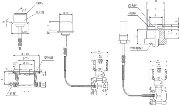 ⑤ GP型單法蘭液位變送器一側毛細管長度一般為1.5米,zui長不宜超過3米(特殊情況協議商定)。
